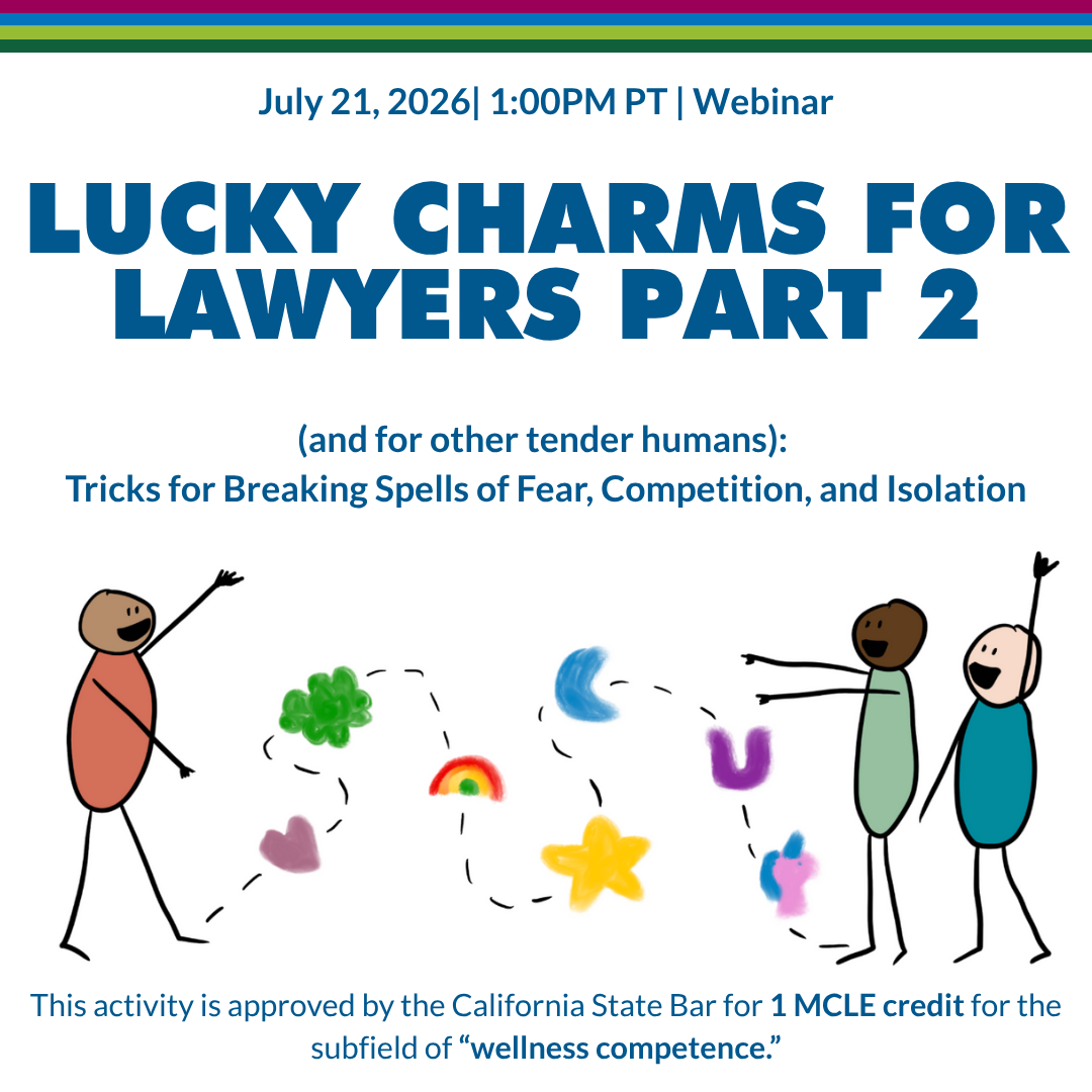 This activity is approved by the California State Bar for 1 MCLE credit for the subfield of “Competence - Wellness Education"